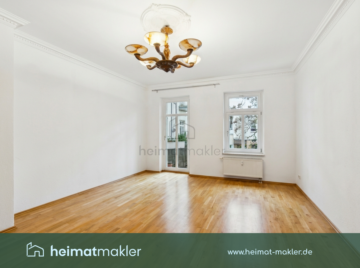 Die helle Wohnung überzeugt durch einen durchdachten Grundriss, der sowohl gemeinsames Wohnen als auch individuelle Rückzugsmöglichkeiten ermöglicht. Klassische Altbaudetails und der durchgängige Parkettboden in allen Wohnräumen sowie im Flur schaffen eine warme, einladende Atmosphäre und unterstreichen den behaglichen Charakter der Räume.