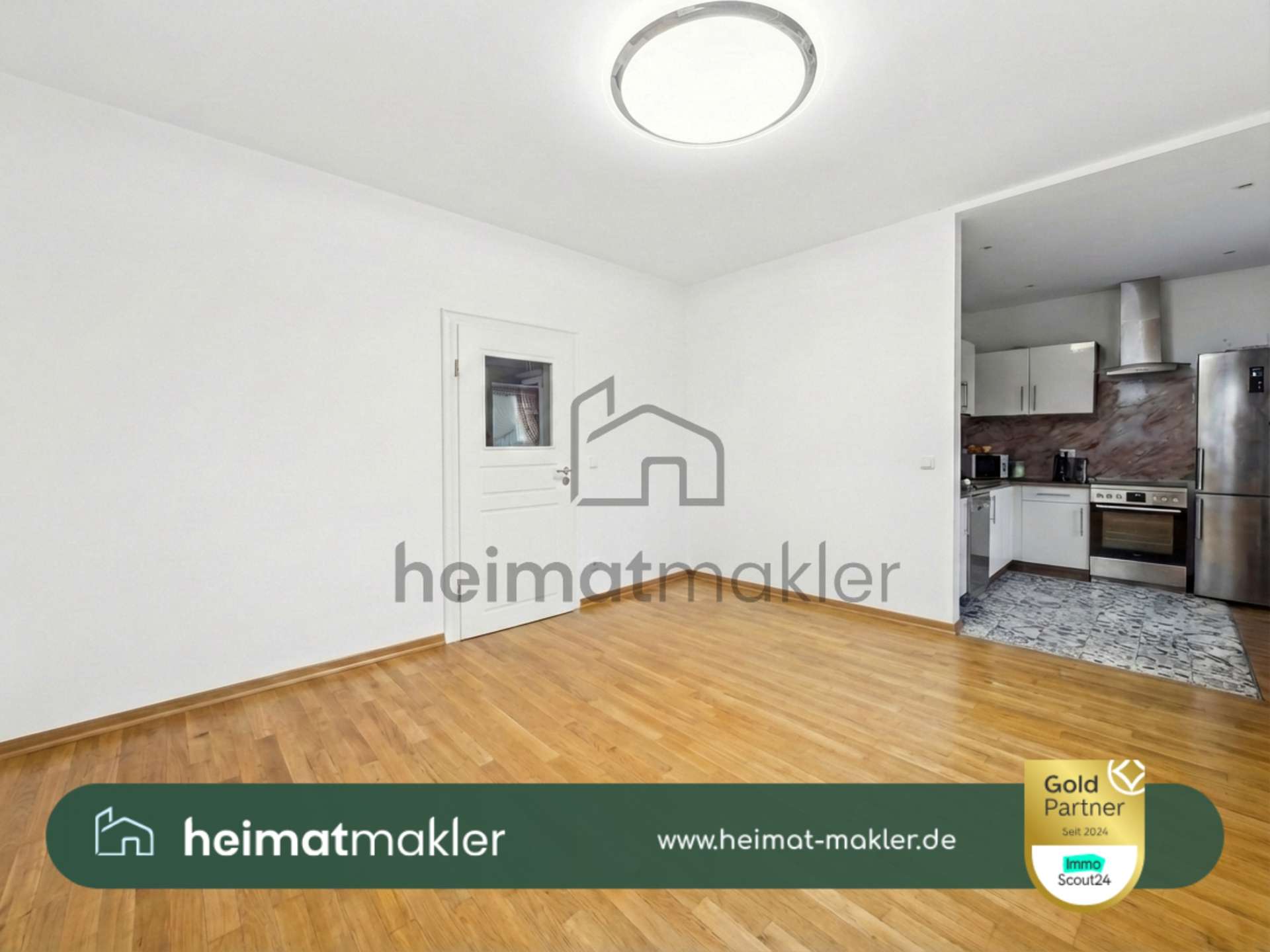 • Parkett in den Wohnräumen, Fliesen in Küche und Bad