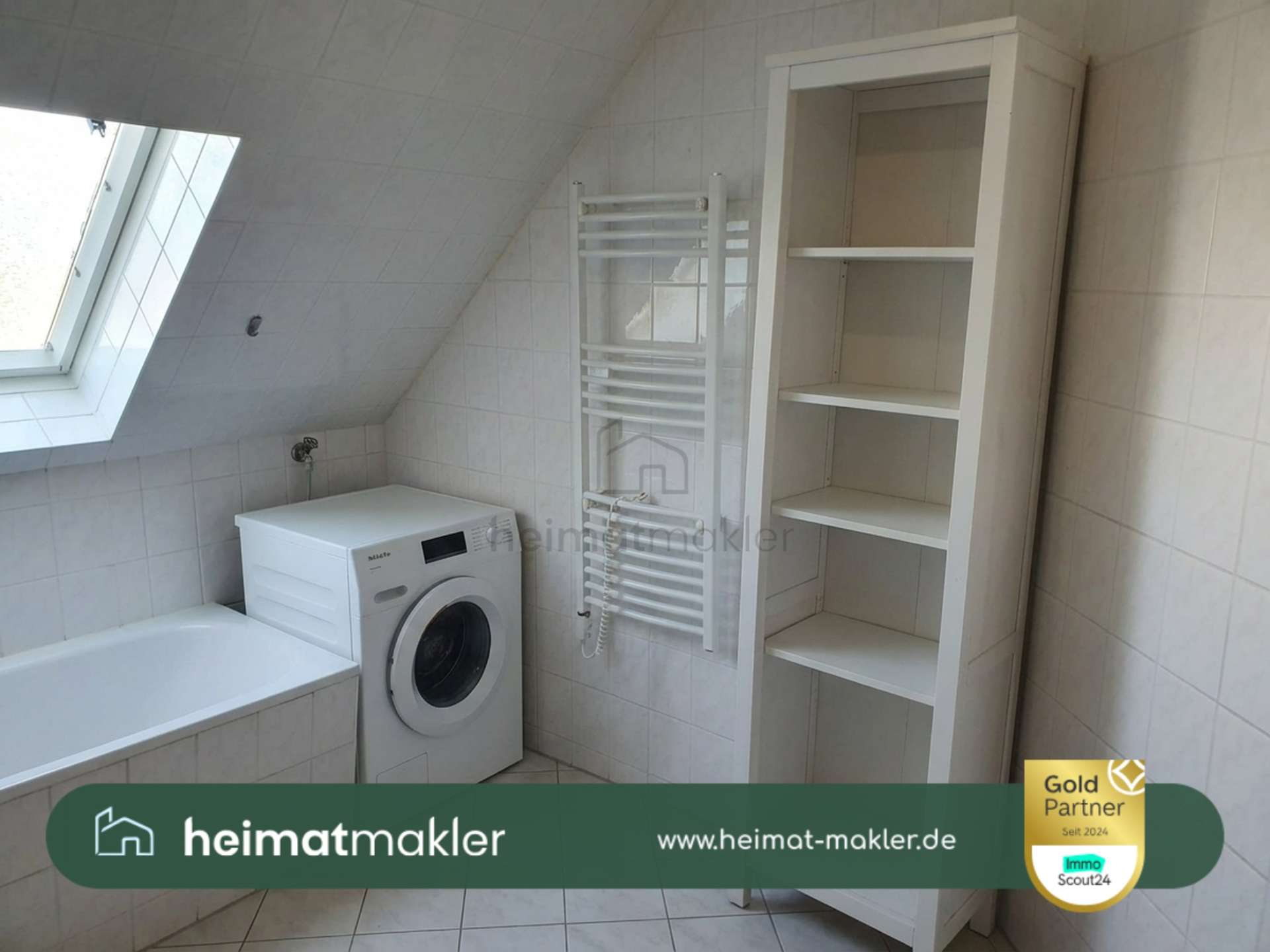 Das Tageslichtbad verfügt über ein Fenster und ist mit einer Badewanne ausgestattet, wodurch sowohl eine angenehme Belüftung als auch ein komfortabler Nutzungskomfort gegeben ist.