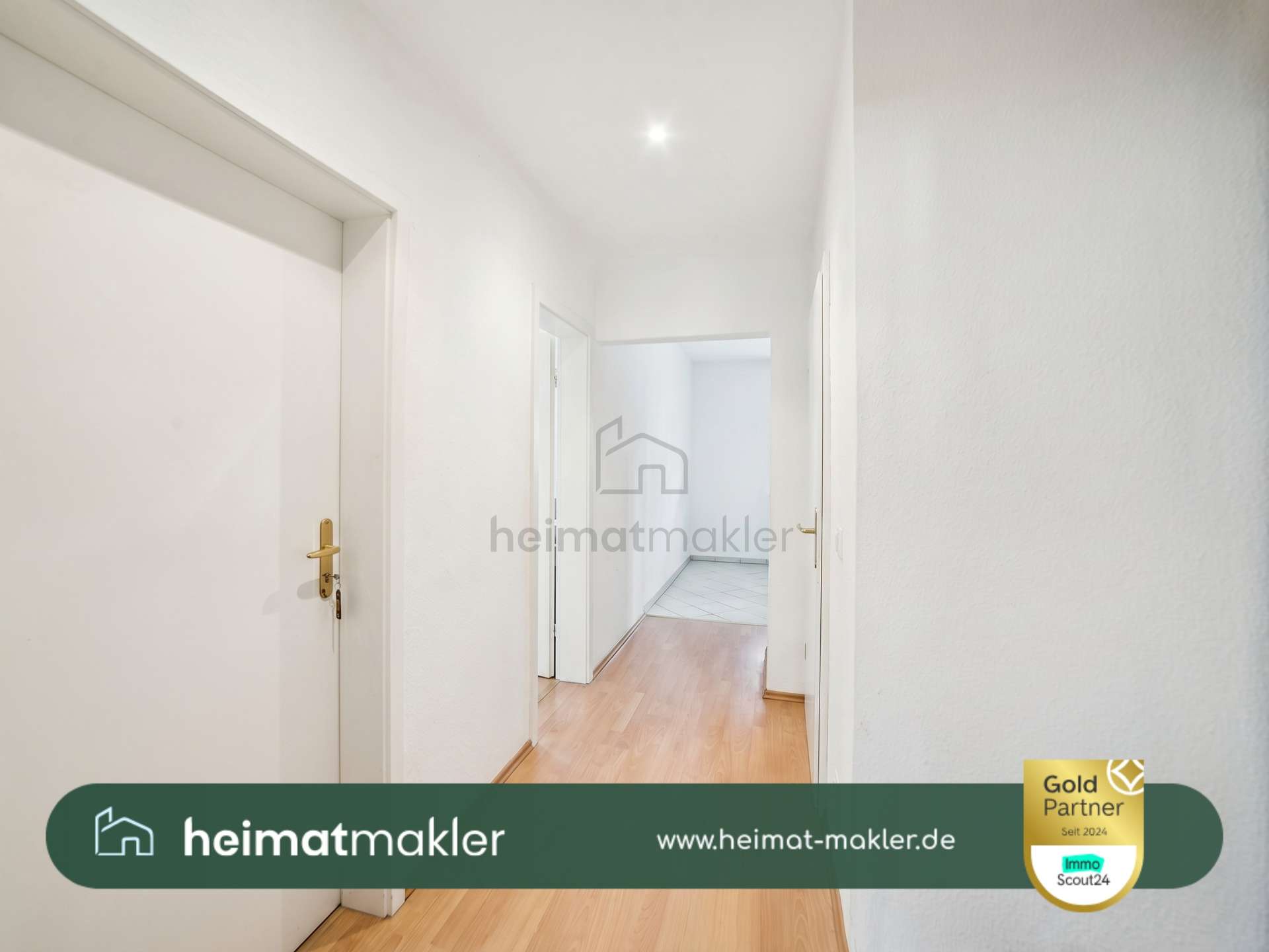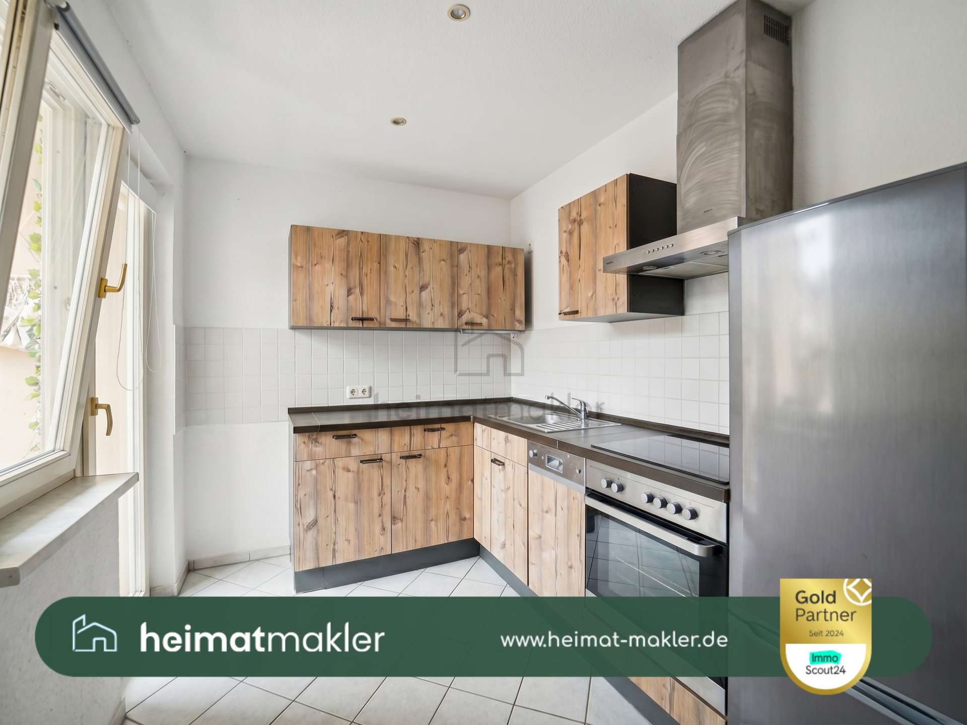 Boden: Laminat (Wohnräume), Fliesen (Küche, Bad)