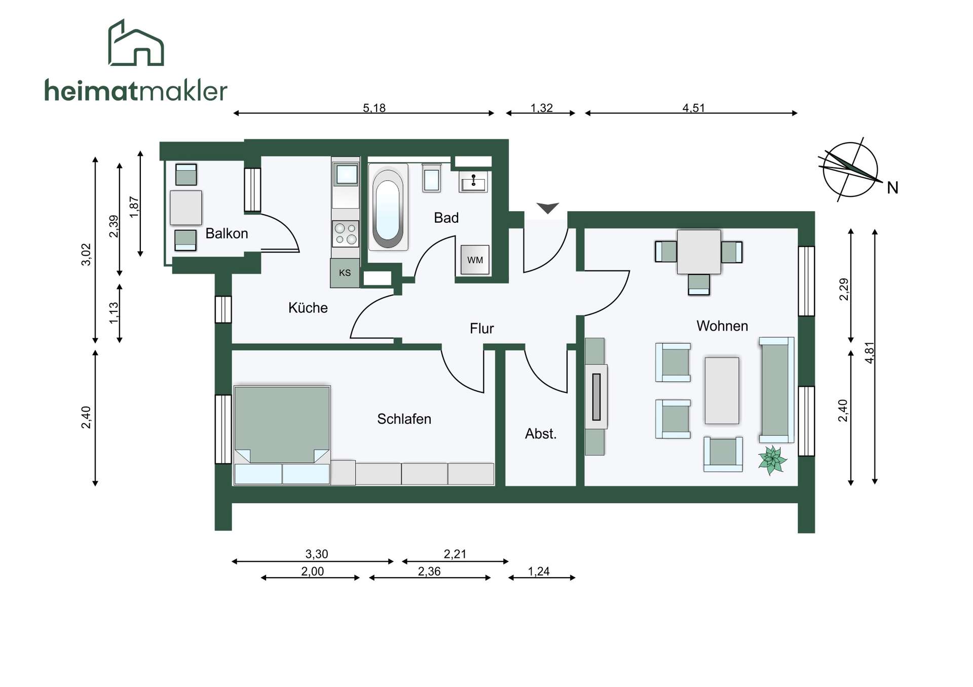 Wohnfläche: ca. 56,82 m²